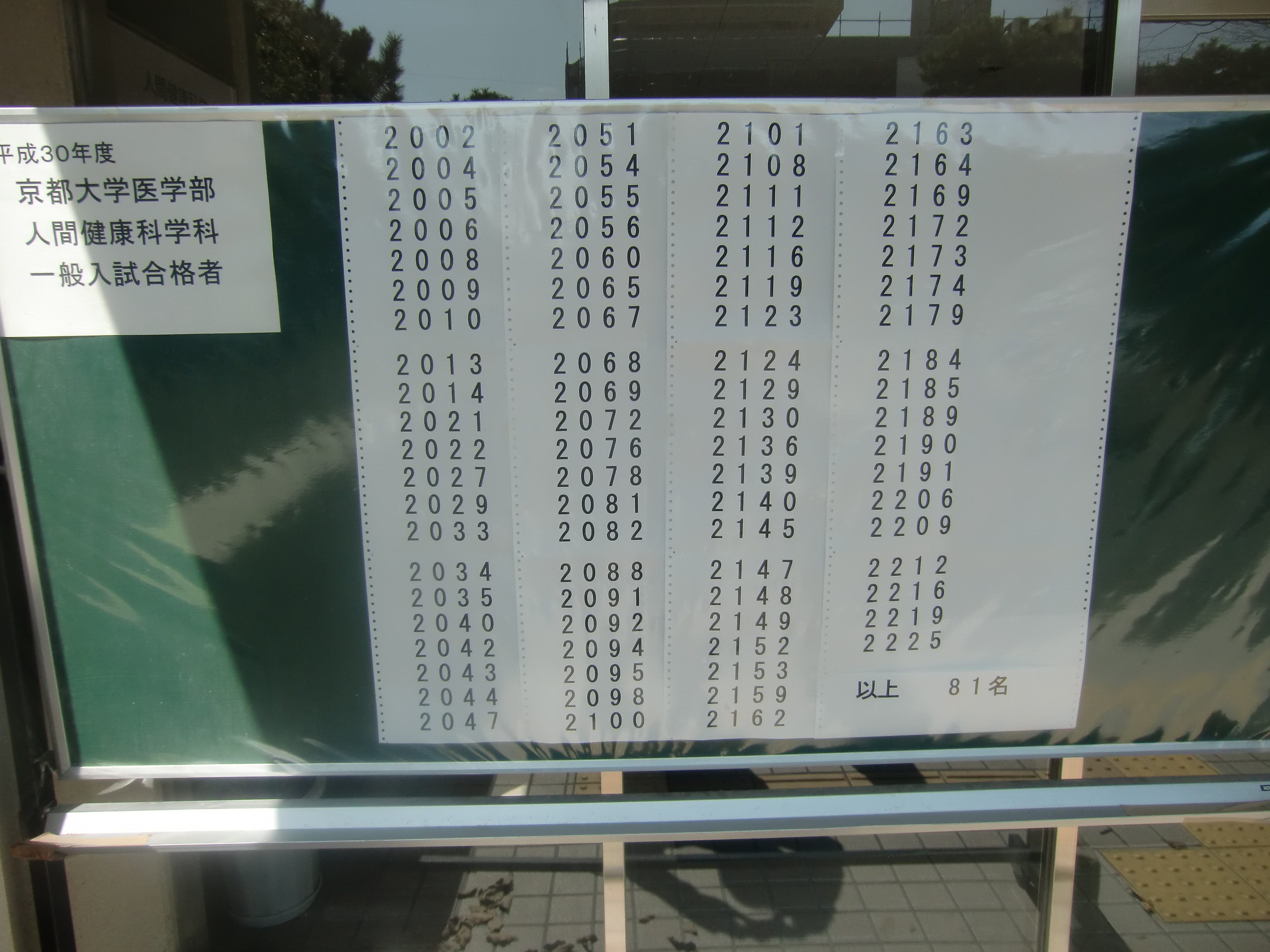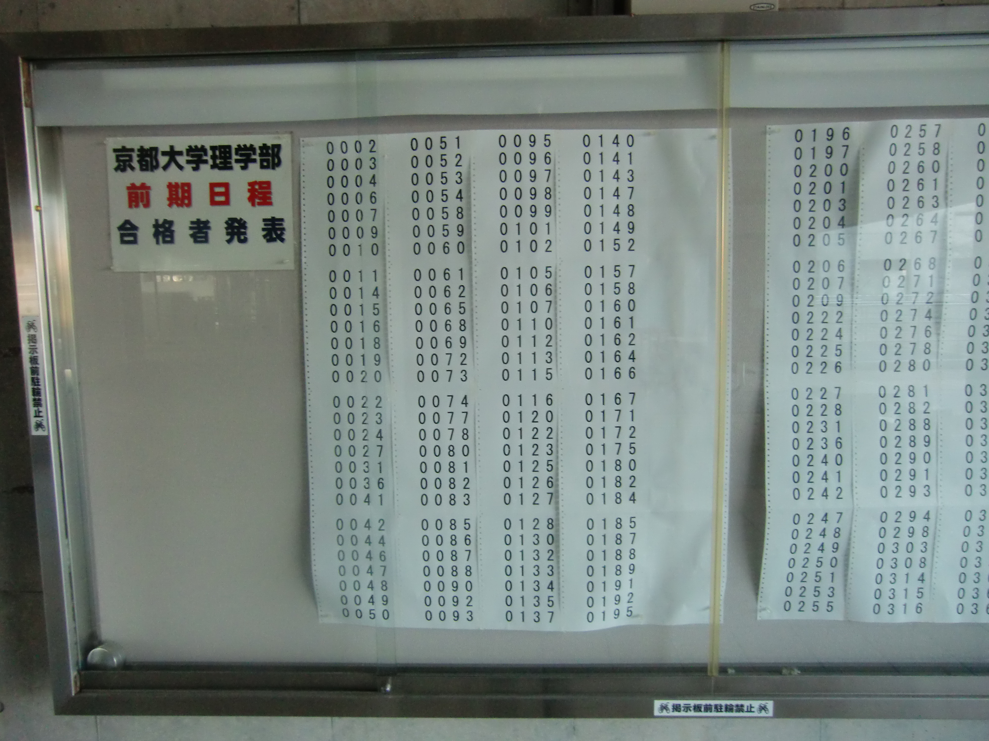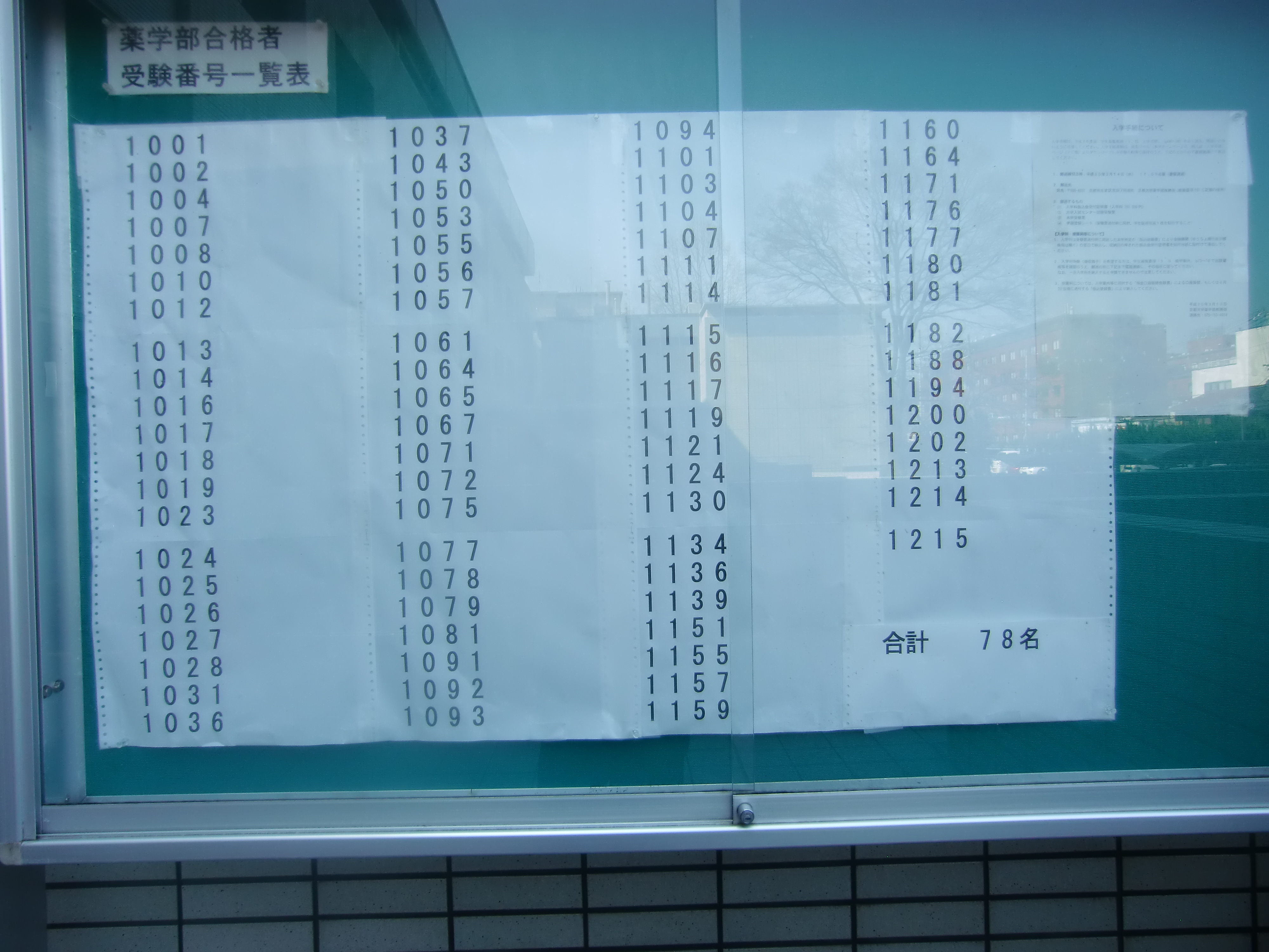 今年も全学部の合格者受験番号を写真に収めましたので