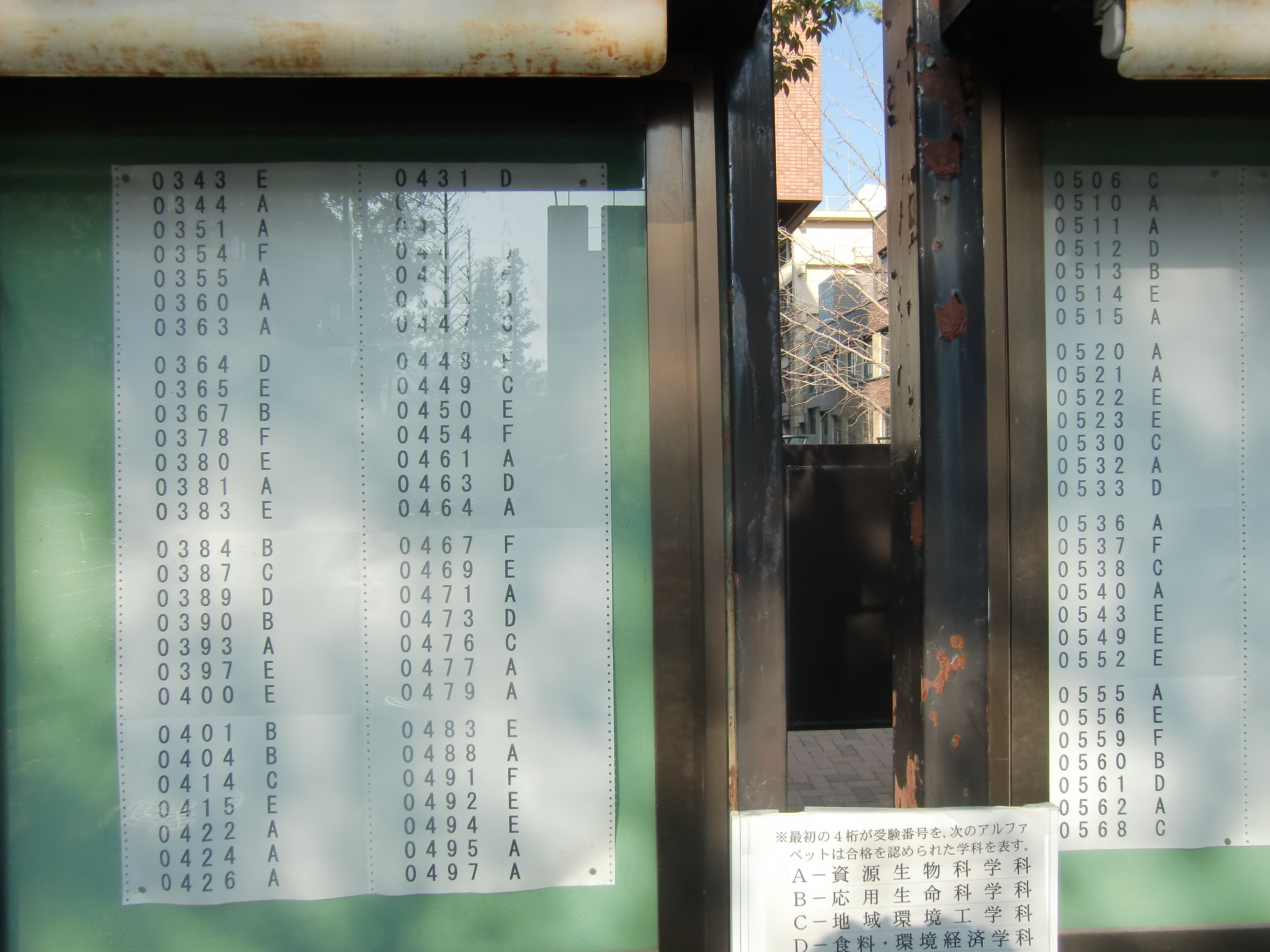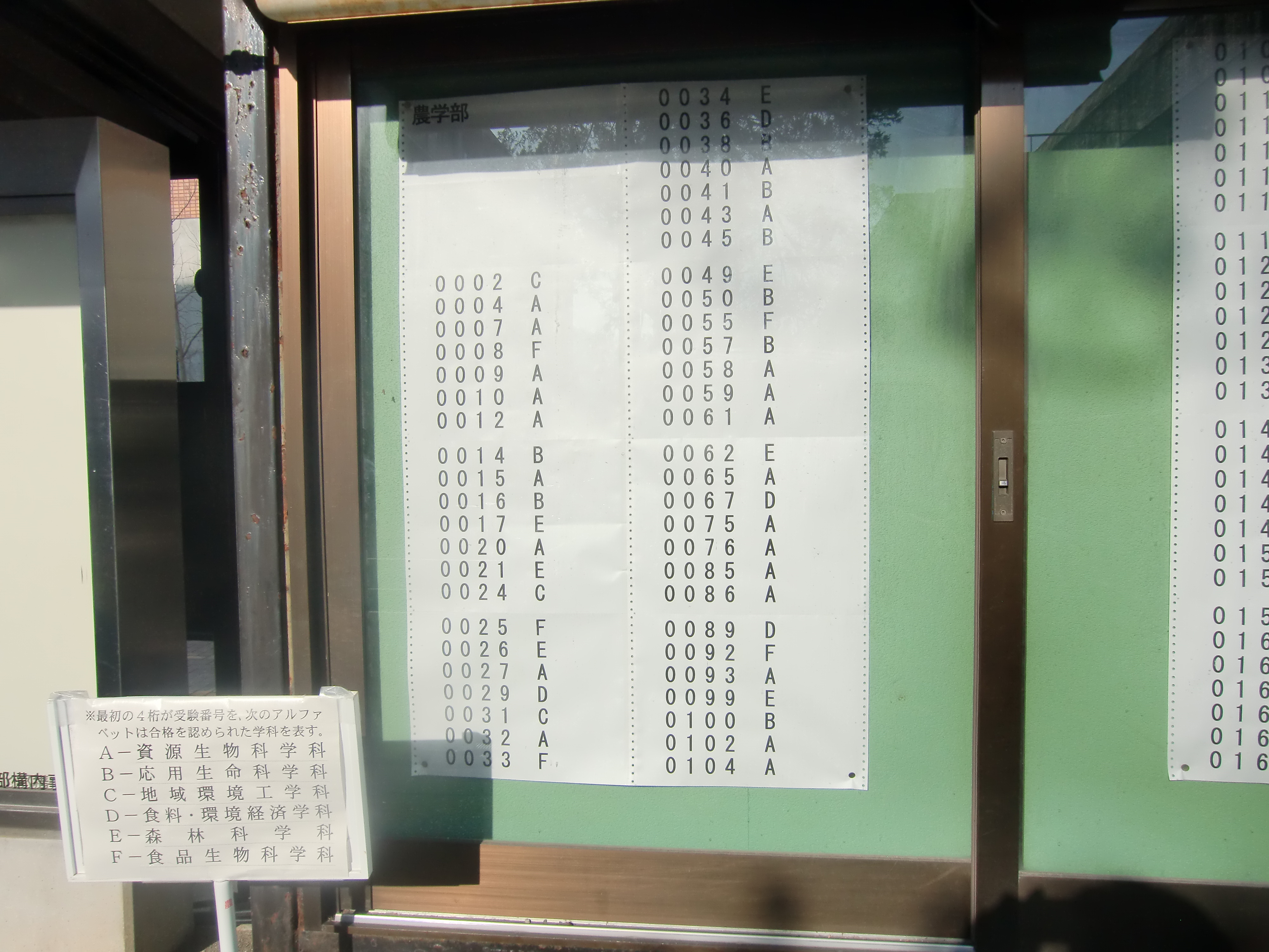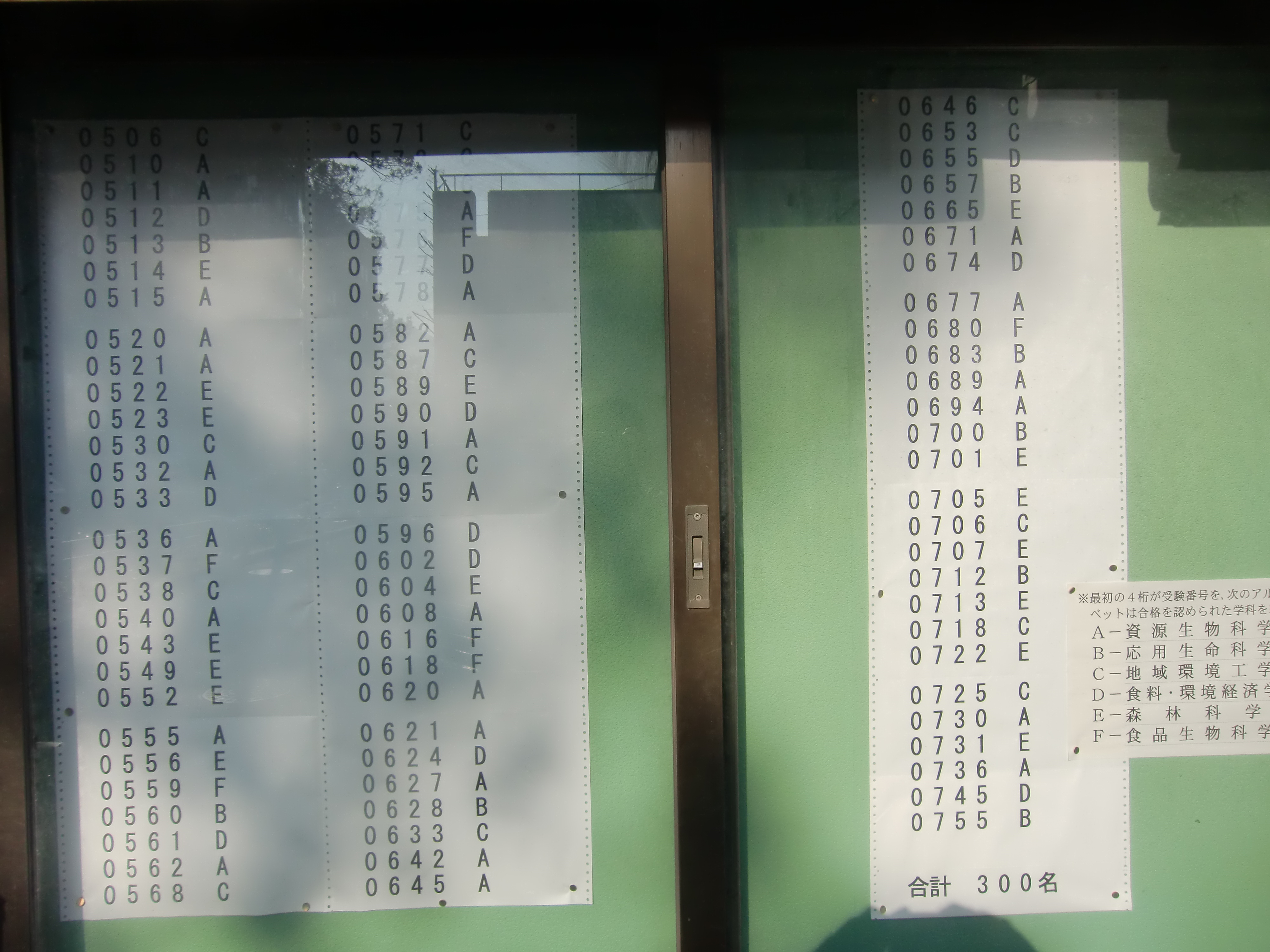 今年も全学部の合格者受験番号を写真に収めましたので