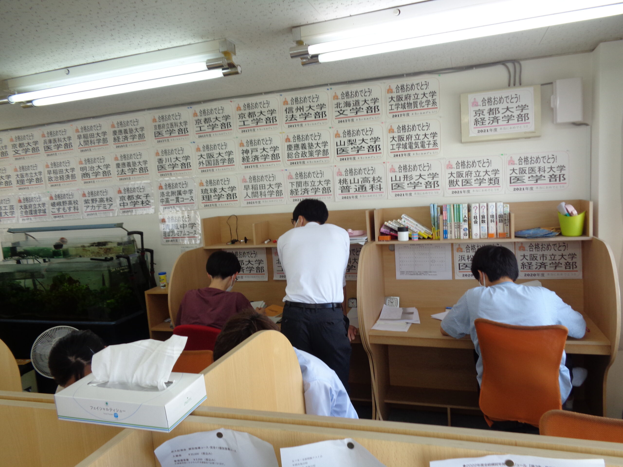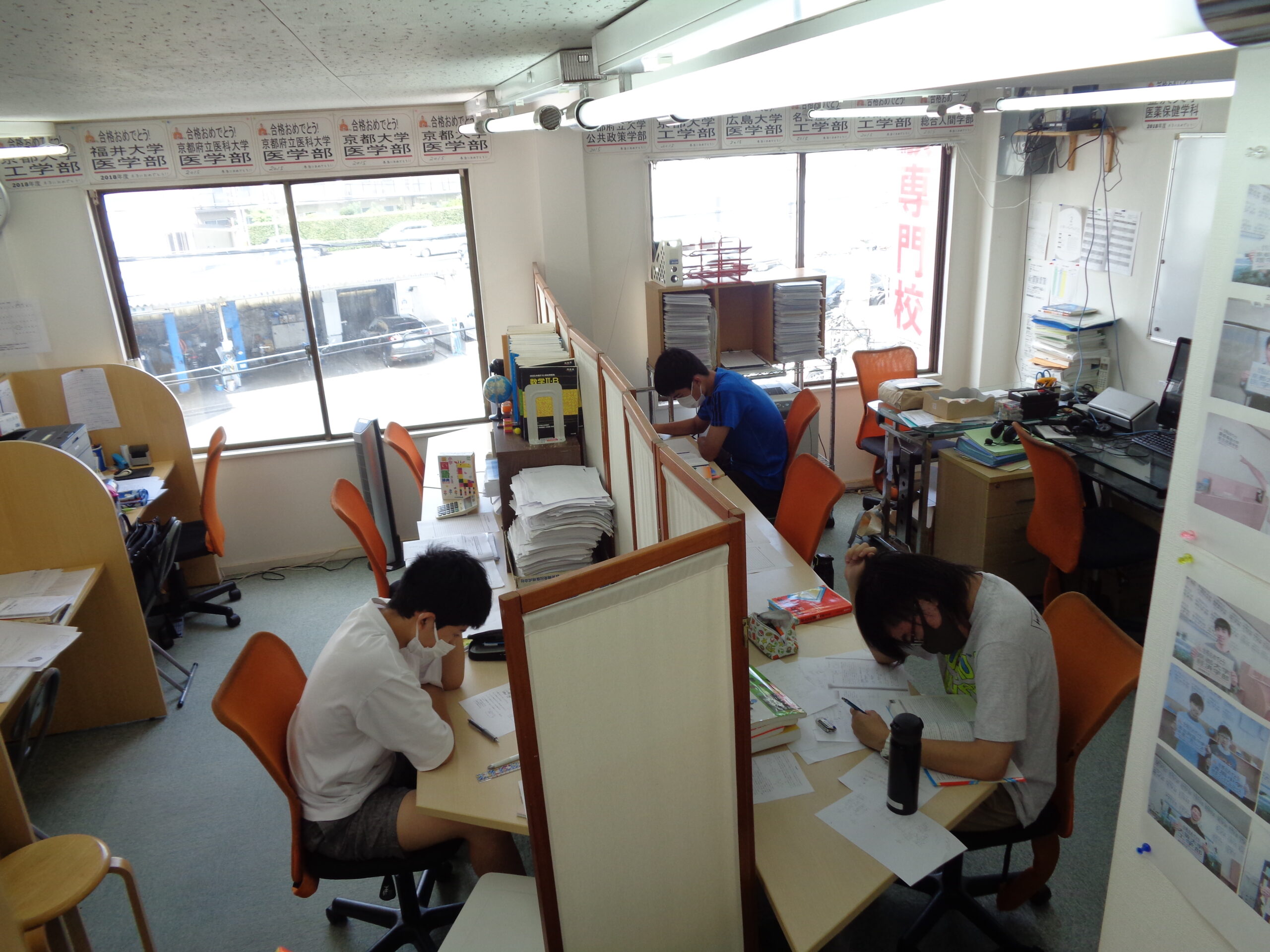 志望校の過去問演習をしたり、学校の夏休みの課題に取組んだり、苦手分野に取組んだり、2学期の先取りをしたり、各生徒毎に課題を決めて取り組んでいます。
