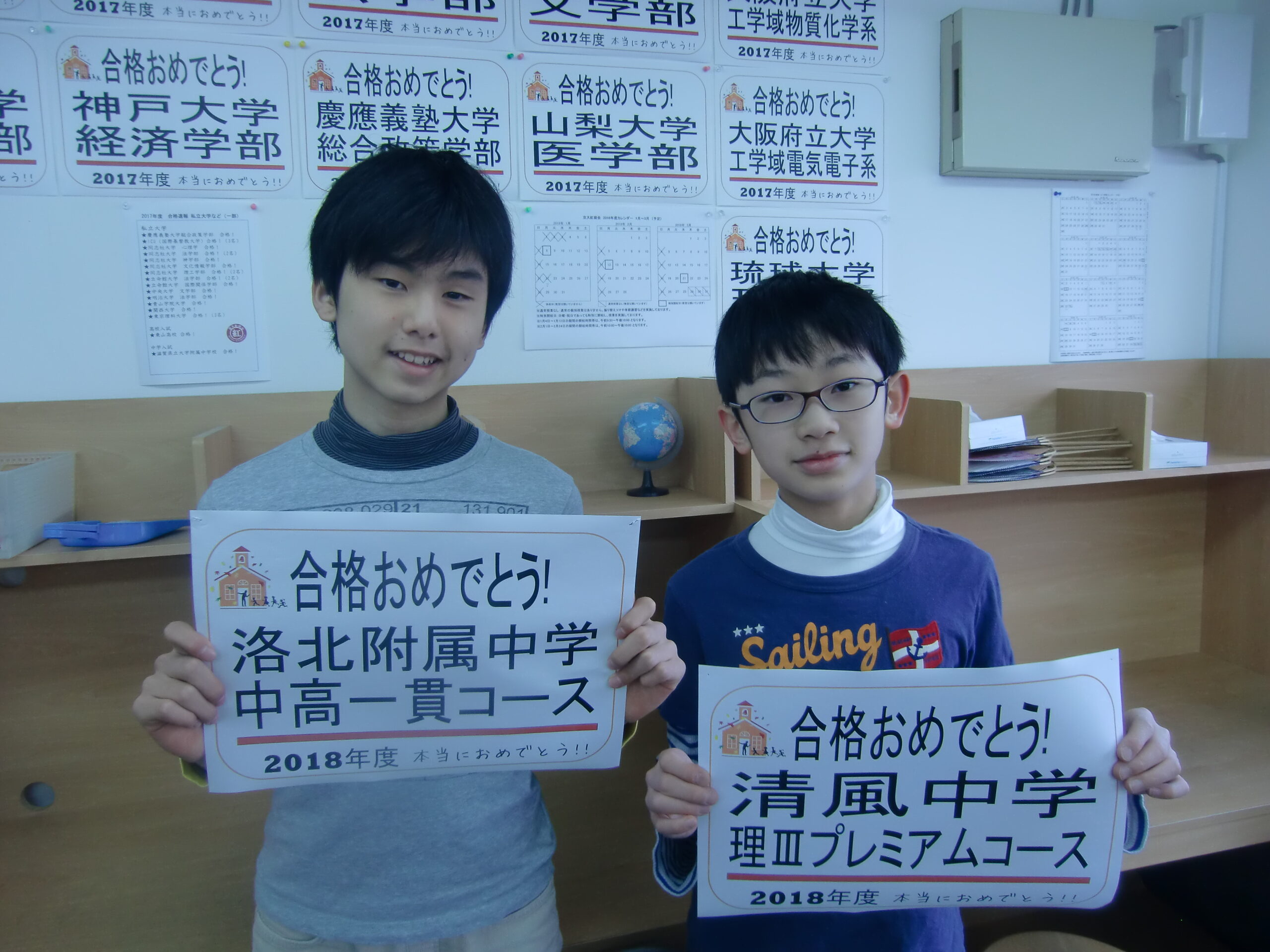 ※当塾では中学入試合格記念の写真は原則としてHPには掲載しておりませんが、今回は両名の保護者様の許可を得て特別に公開しております。