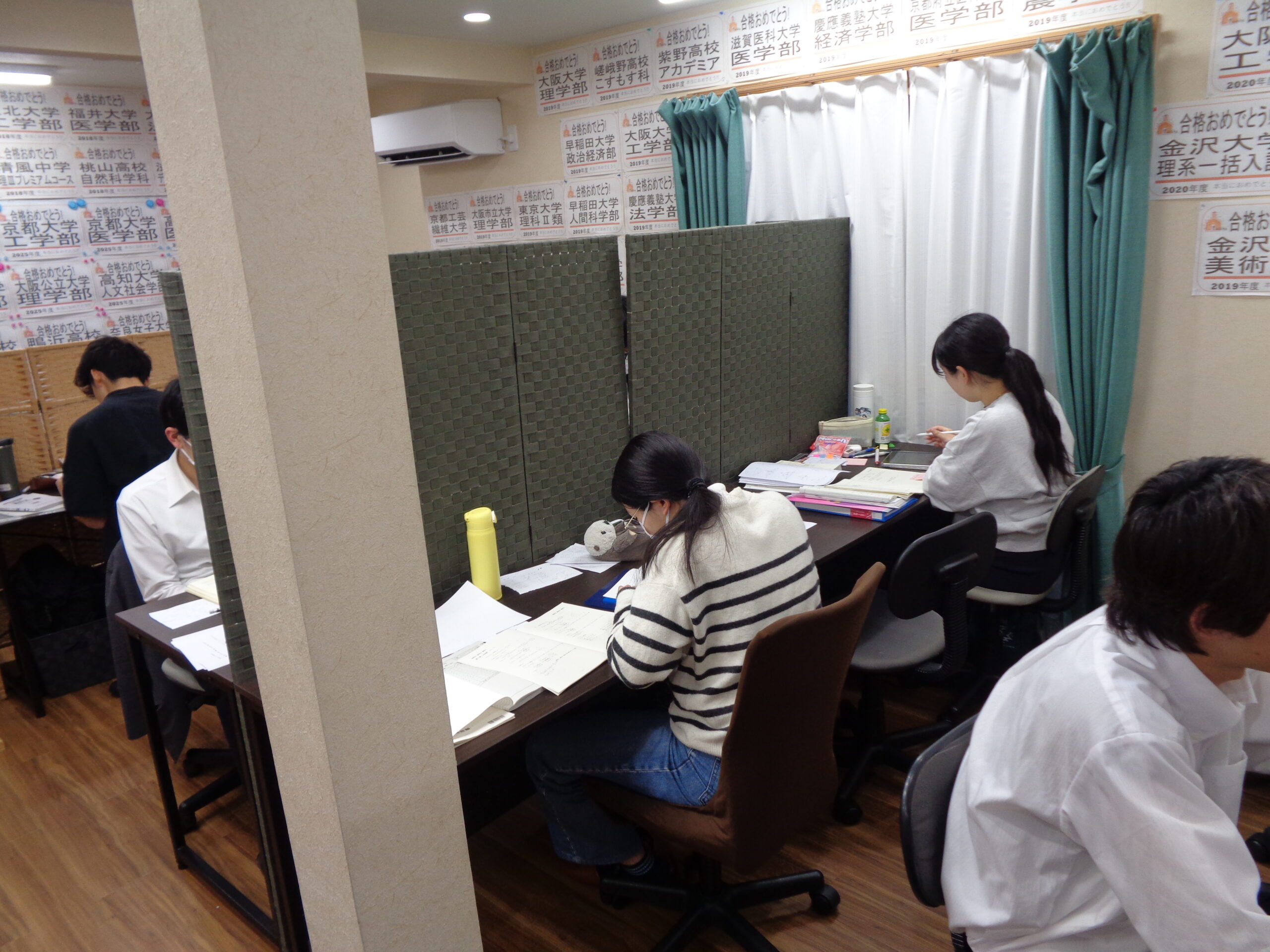 特別特訓ではピリッとした雰囲気の中で質の高い学習をすることができます。また優秀なスタッフがいつでも質問対応をします。